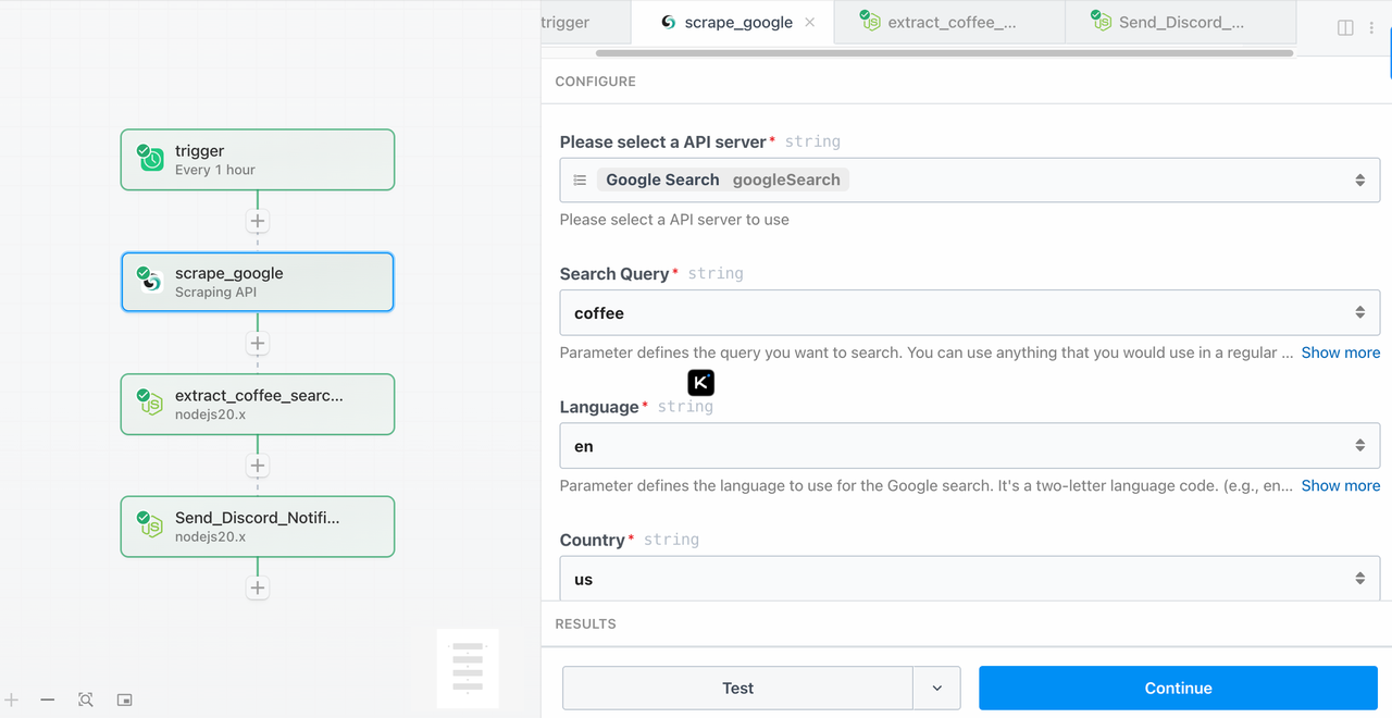 Once completed, you can add all other parameters and test the query. Just like the steps above, you’ve now set up your first request in Pipedream.